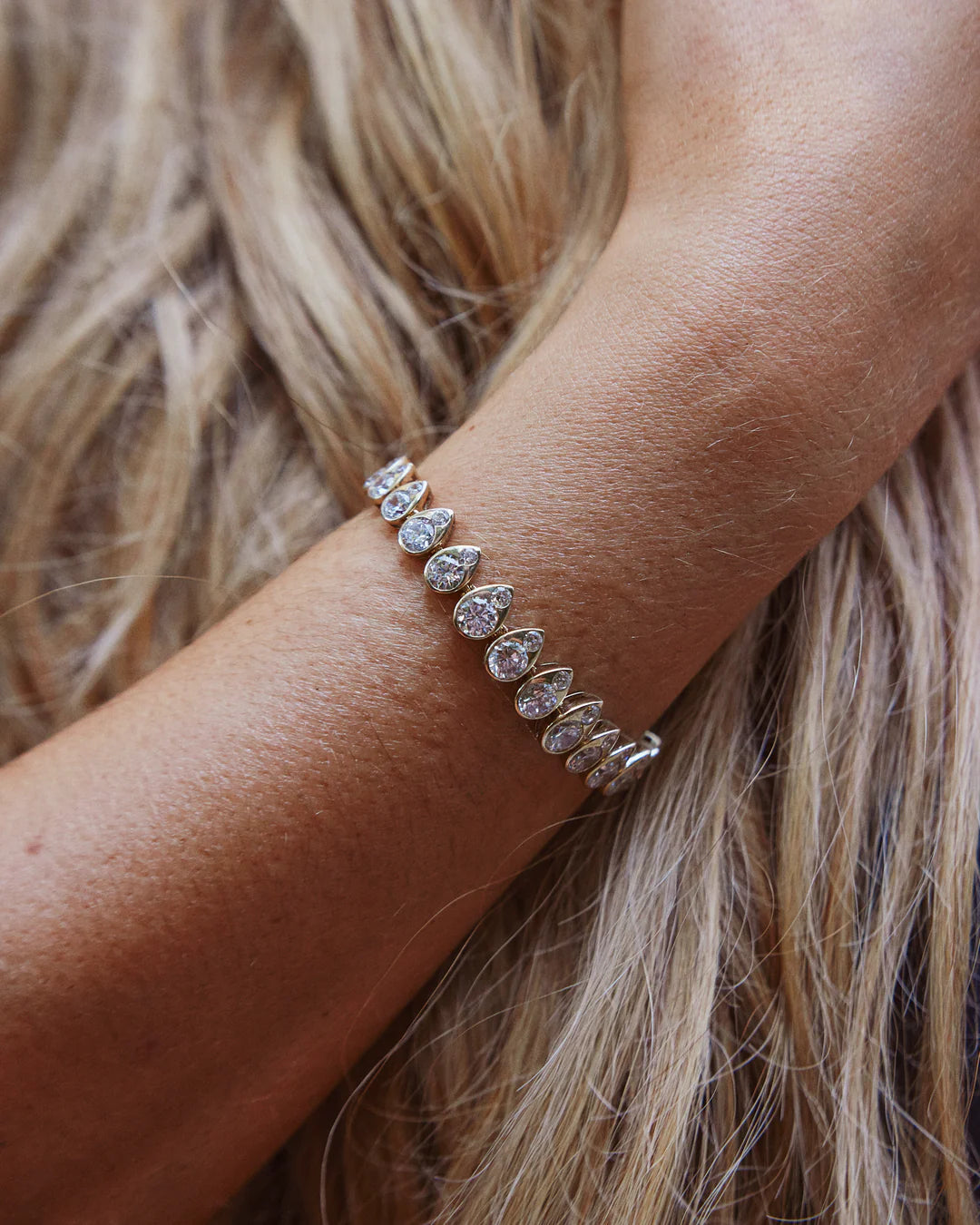 Le bracelet CALI est une ode à l'élégance et au savoir-faire artisanal. Ce bijou précieux, inspiré de la haute joaillerie, se compose de multiples gouttes étincelantes, chacune sertie de deux cristaux de zircon d'une qualité exceptionnelle. L'éclat de ces pierres rivalise avec celui des diamants, capturant la lumière à chaque mouvement. Une pièce intemporelle qui sublimera votre poignet avec raffinement et témoignera de votre goût pour l'excellence.
