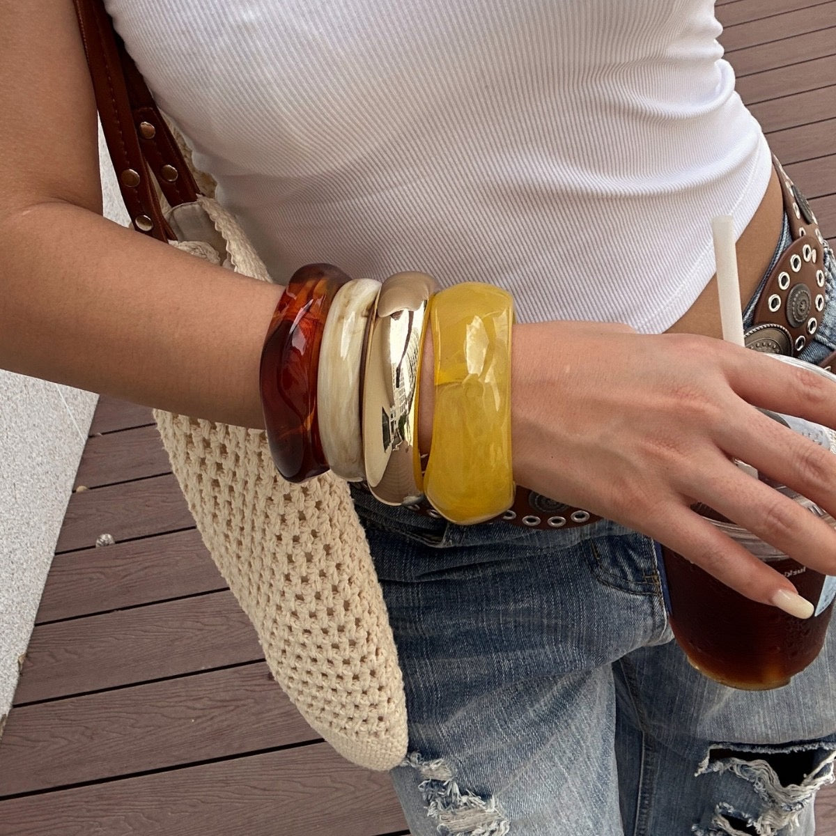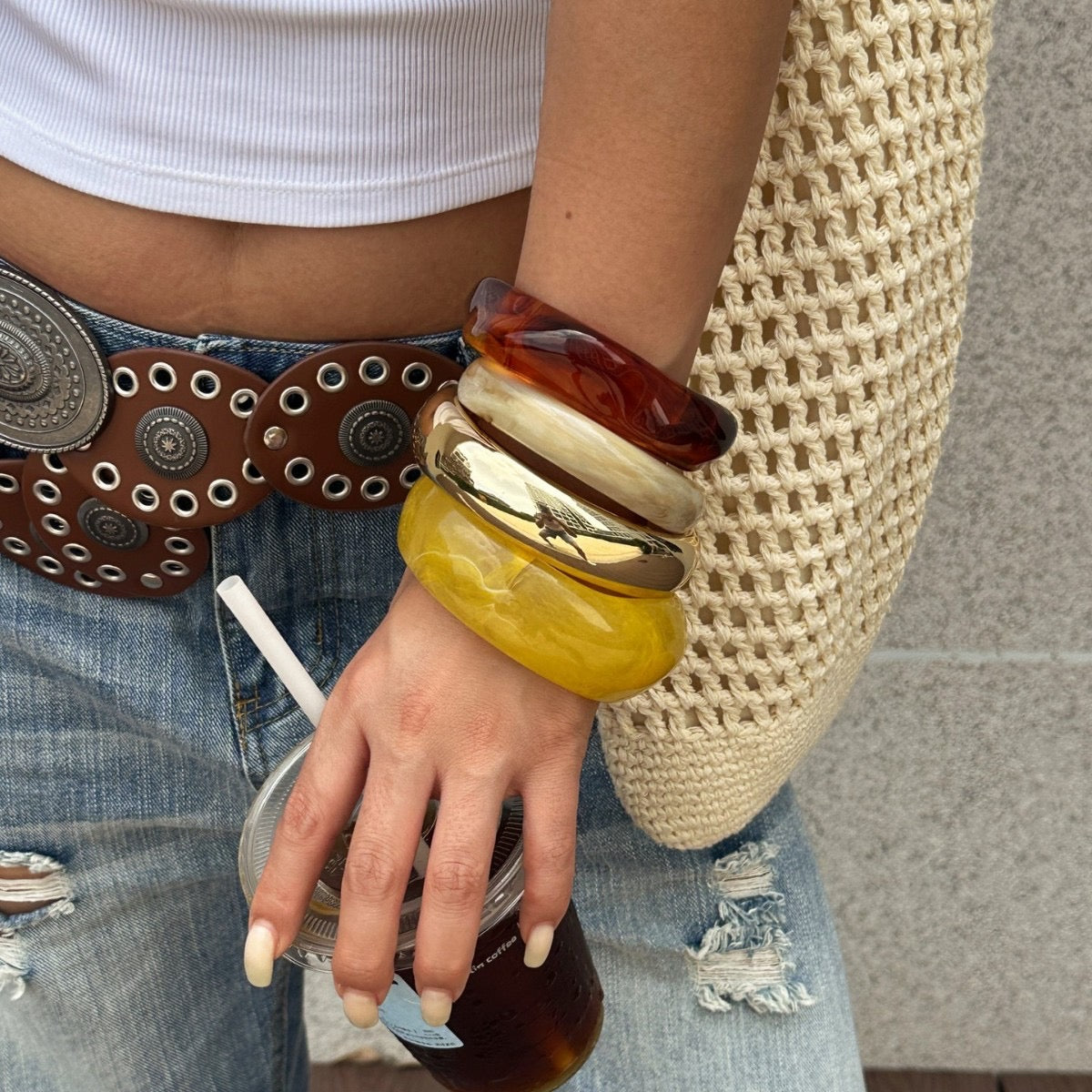 Façonnés en résine acrylique , ces bijoux affichent un style vintage audacieux qui sublime chaque geste. Légers et confortables, ils habillent votre poignet d'un charme rétro revisité, parfait pour affirmer votre personnalité avec originalité.