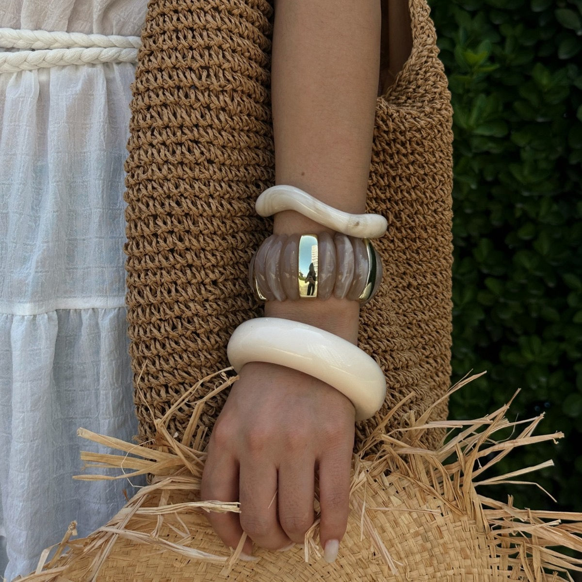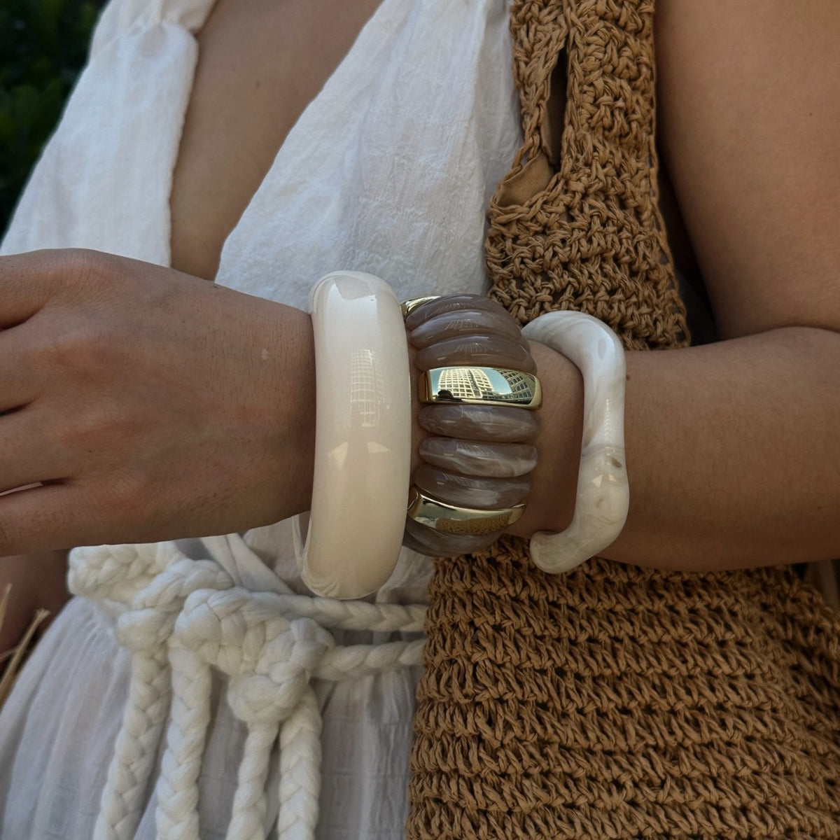 Avec un design délicat et un poids équilibré, ces bracelets se portent seuls pour une touche minimaliste ou en accumulation pour un effet statement. Chaque bracelet capture la lumière subtilement, faisant ressortir la beauté des nuances naturelles et révélant un style à la fois féminin et affirmé.
