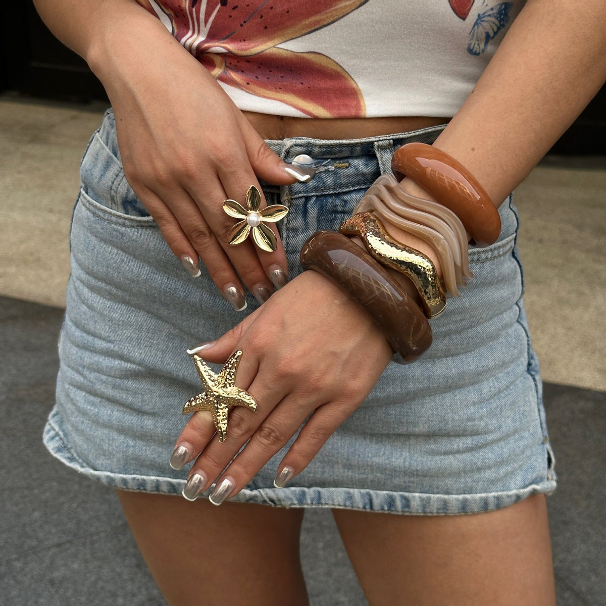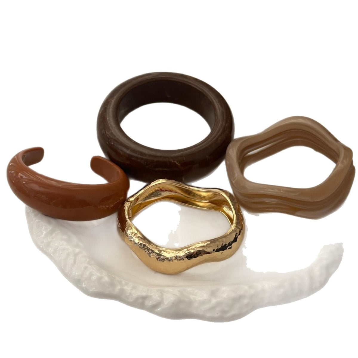 Les bracelets en résine apportent légèreté et éclat, tandis que l’acier inaltérable ajoute une touche sophistiquée et durable. Portés ensemble, ils créent un look audacieux et harmonieux, parfait pour rehausser vos tenues quotidiennes ou sublimer vos looks de soirée.