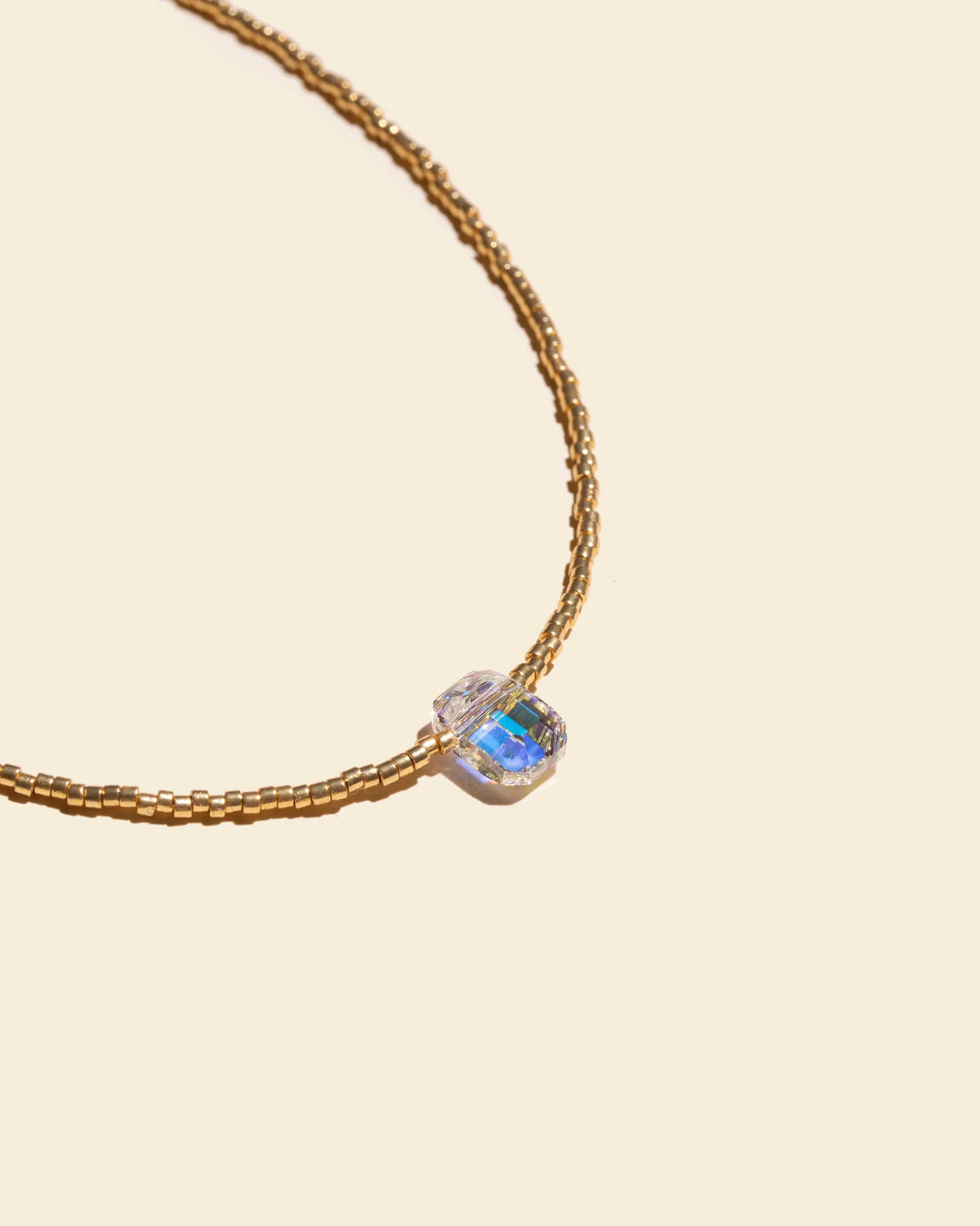 Tel un talisman, le collier ras-du-cou ORÉE célèbre la lumière. De délicates perles dorées enlacent votre cou et révèlent un cristal Swarovski aux mille reflets. Tel un diamant, il capture la lumière et la diffuse avec une rare intensité. Portez ORÉE seul pour un look minimaliste ou en accumulation pour affirmer votre style et votre personnalité.